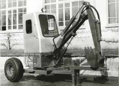 Der Schreitbagger von Ernst Menzi (1897-1984) ist damals eine Sensation: Er kommt mühelos im unwegsamen, steilen Gelände voran. Bis zu diesem Zeitpunkt kann keine der herkömmlichen Baumaschinen für schwierige Arbeiten am Hang eingesetzt werden. Mit dem Nachnamen Menzi und in Anlehnung an die legendäre Märchengestalt (Muck - der kleine Mann, der alles kann) wird 1966 die erste Menzi-Muck-Maschine ausgeliefert.