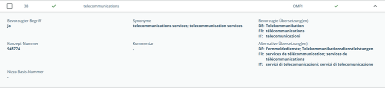 Once you’ve created a list of goods and services, you can translate it into an official Swiss language or into English. The database is searched for terms with the same meaning in the target language.